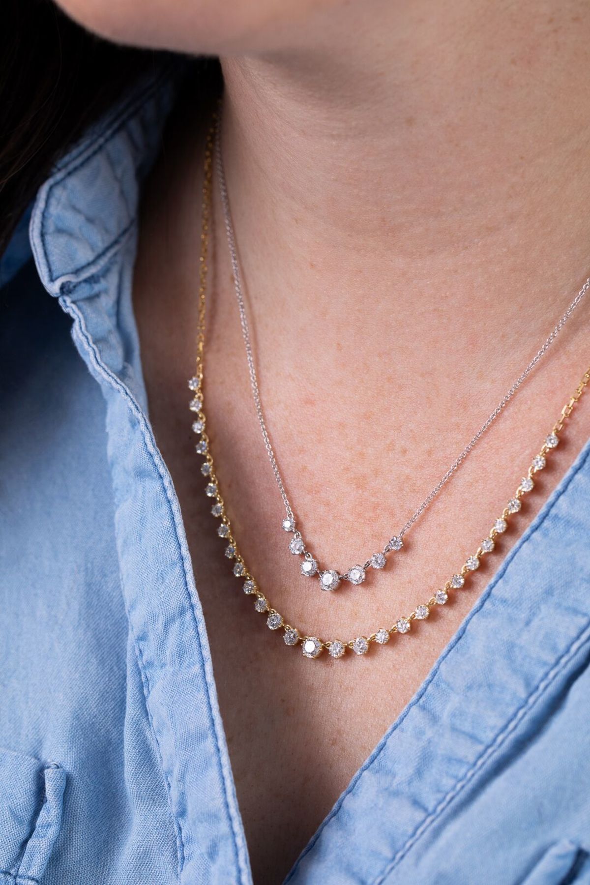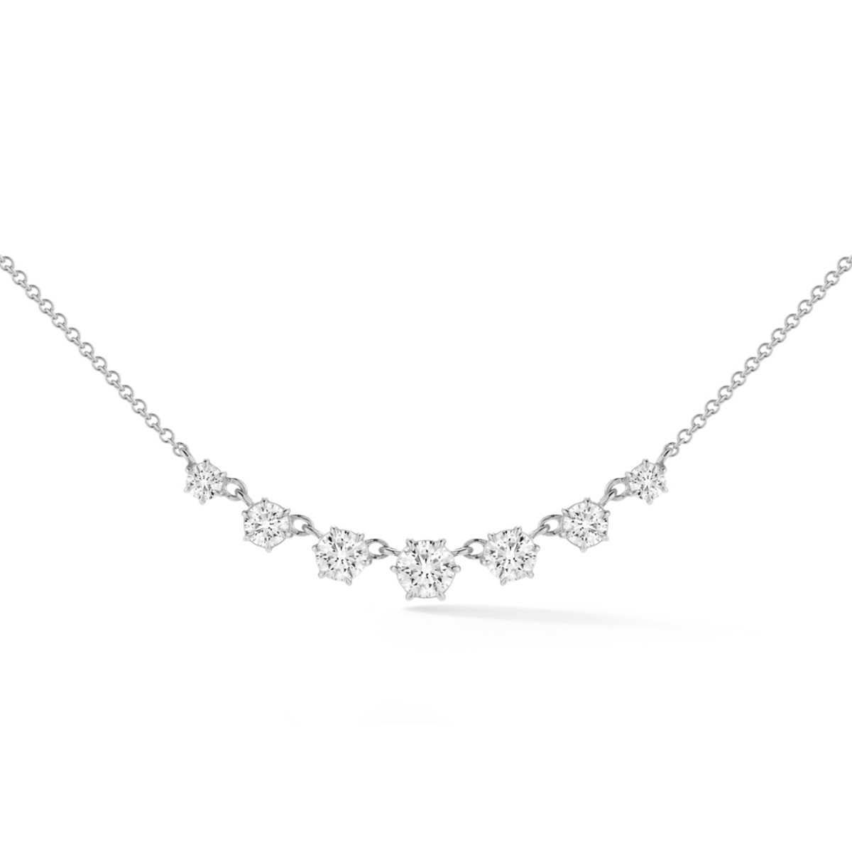 The Small Penelope Necklace Features 7 Graduating Round Brilliant-Cut Diamonds. This Smaller Version of a Tennis Necklace Is The Perfect Layering Piece Or Can Be Worn Alone For a Classic and Clean Diamond Look.