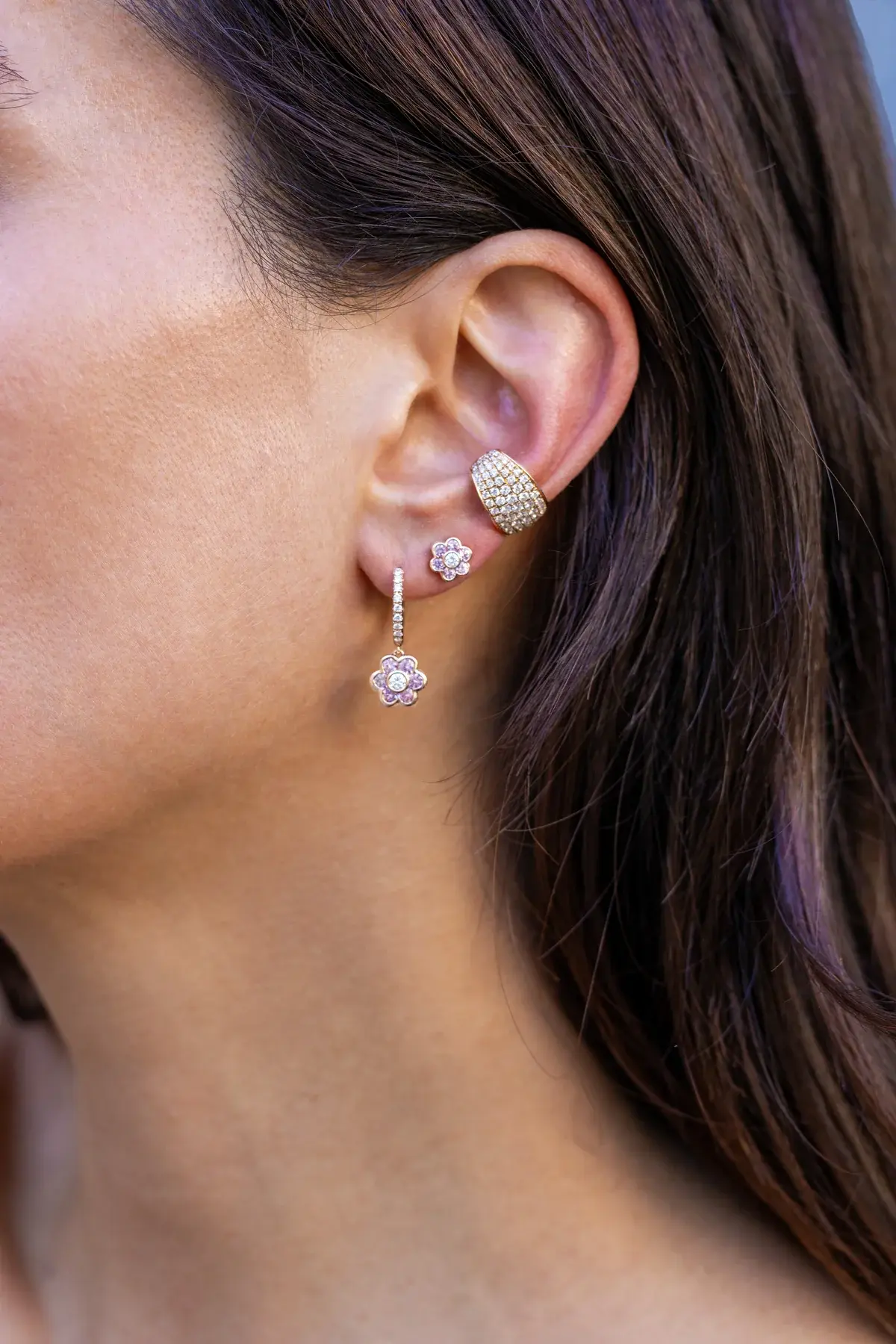 Delicate and charming, the Small Pink Sapphire Flora Studs in 18K Yellow Gold by M. Flynn feature vibrant pink sapphires set in a nature-inspired floral design. Crafted in warm 18K yellow gold, these petite studs add a soft pop of color and feminine elegance—perfect for everyday wear or as a thoughtful gift.