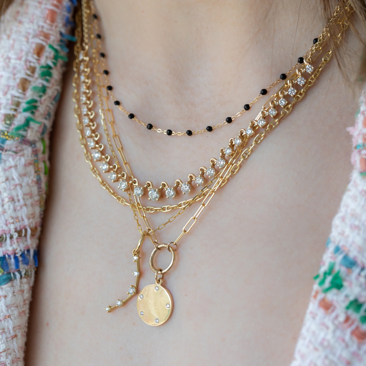 A part of The GATES Collection by M. Flynn, this is the medium version of our Token Necklace. Wear it alone or layer it with other necklaces. This necklace can also be engraved.
