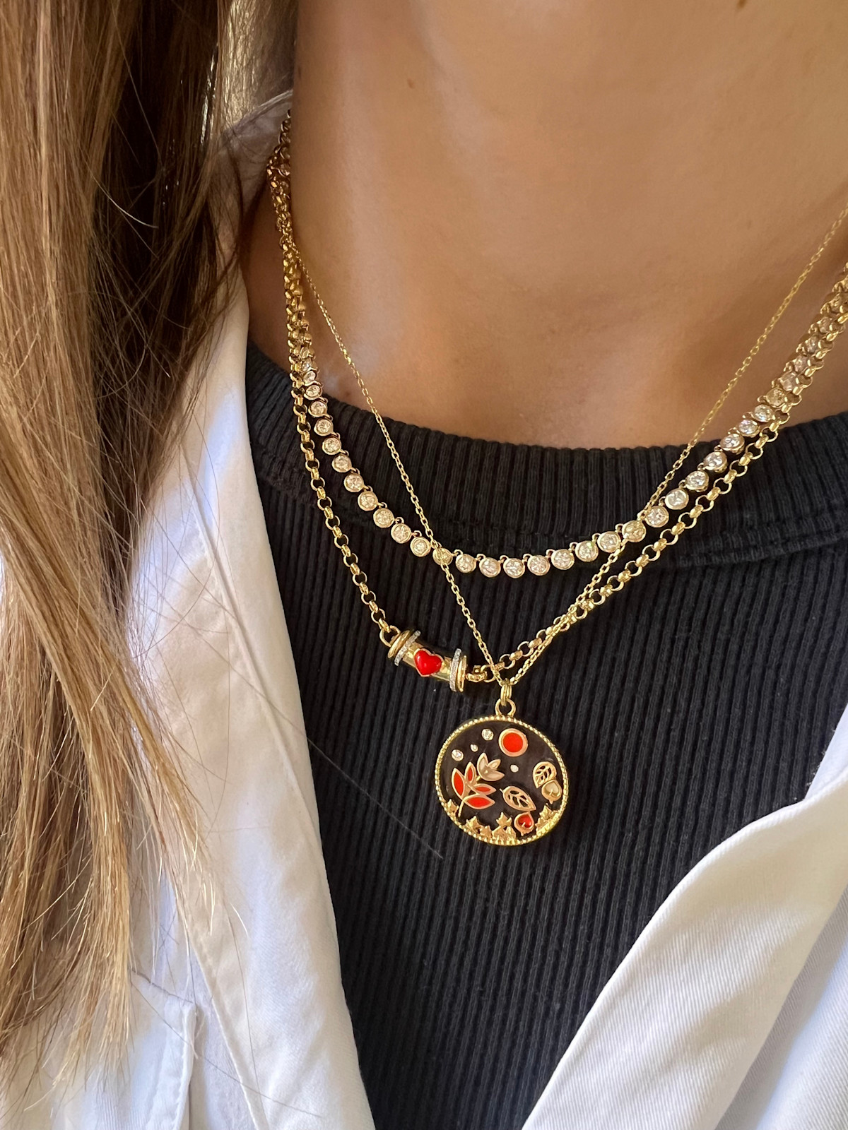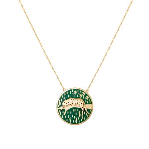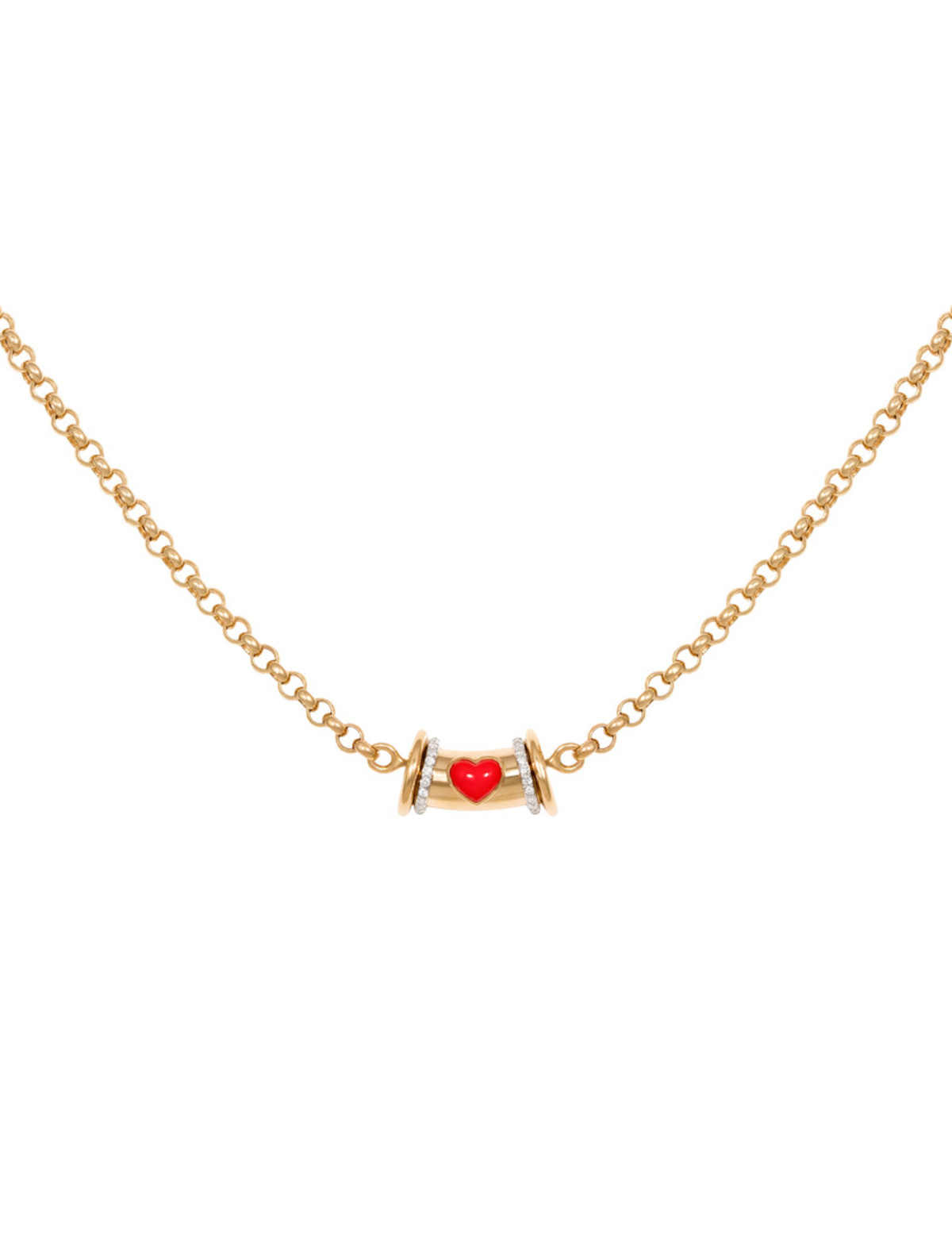 necklace inlaid with red coral stones encrusted in 0.06 ct of round white diamonds.