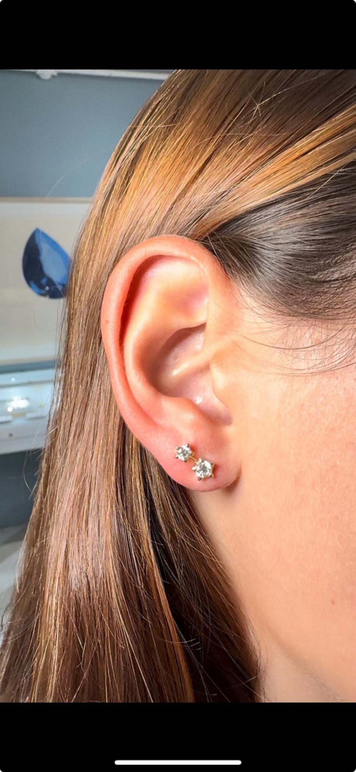 The Starry Night Two Stone Diamond Earrings by Kwiat are a fun alternative to classic diamond studs. These feature two star set diamonds each that float across the earlobe for a double piercing effect.