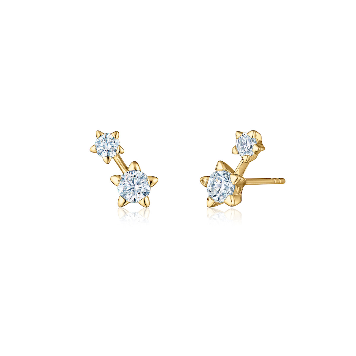 “Star Set” Starry Night Two Stone Diamond Earrings in 18K Yellow Gold