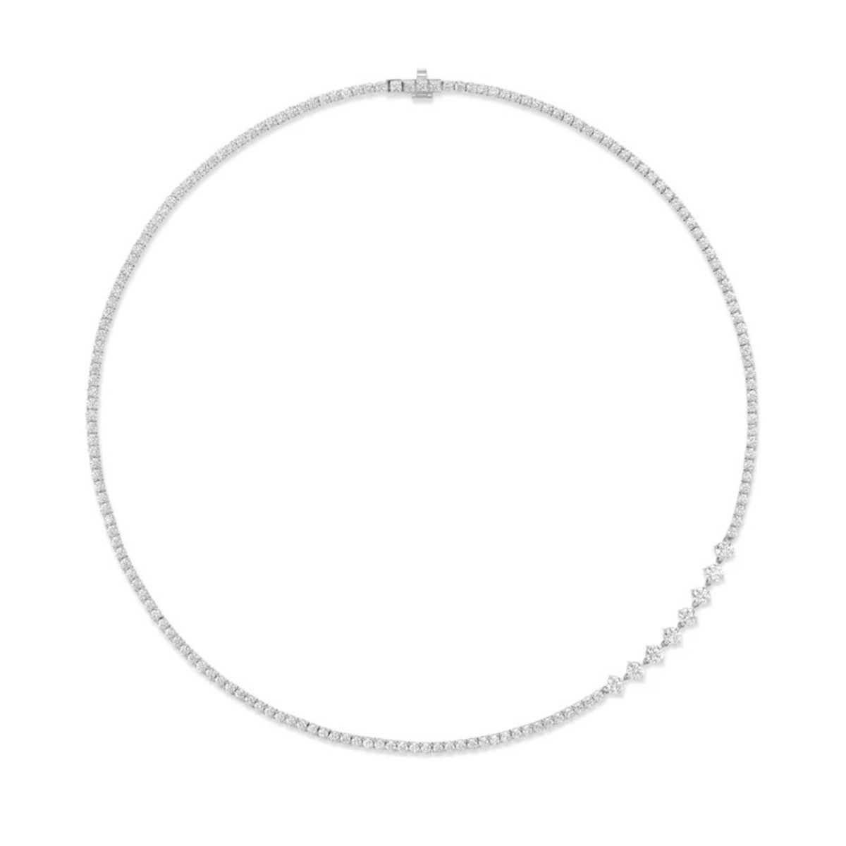 The Stella Tennis Necklace by Melissa Kaye has the sophistication and beauty of a classic diamond tennis necklace with the added luxury and sparkle of a row of eight larger sized diamonds. This tennis necklace is unique in that it is perfect to wear everyday and elevated enough for evening and ocassion-wear!
