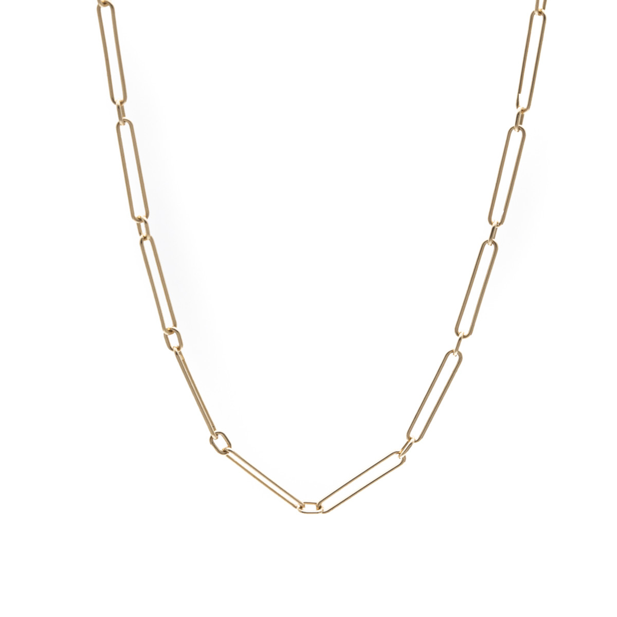 We love the mixed pattern in this rectangle chain. Wear it alone or layer it with other necklaces.