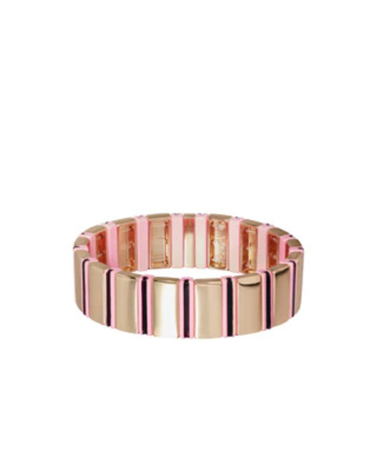 A modern mix of enamel and gold tones—this two-tone striped bracelet adds effortless edge to any wrist stack.