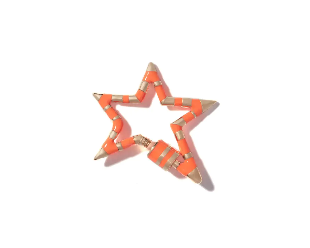 Add a touch of playful elegance to your collection with the Striped Starlock with Tacky Enamel in 14K Yellow Gold from M. Flynn. This unique star-shaped lock is crafted in solid 14K yellow gold and features bold, colorful “tacky” enamel stripes, creating a fun and eye-catching design. Perfect for adding personality to any chain, bracelet, or charm stack, this versatile piece serves as both a connector and a statement charm. Its whimsical yet sophisticated look makes it ideal for those who love to mix color and creativity in their jewelry.