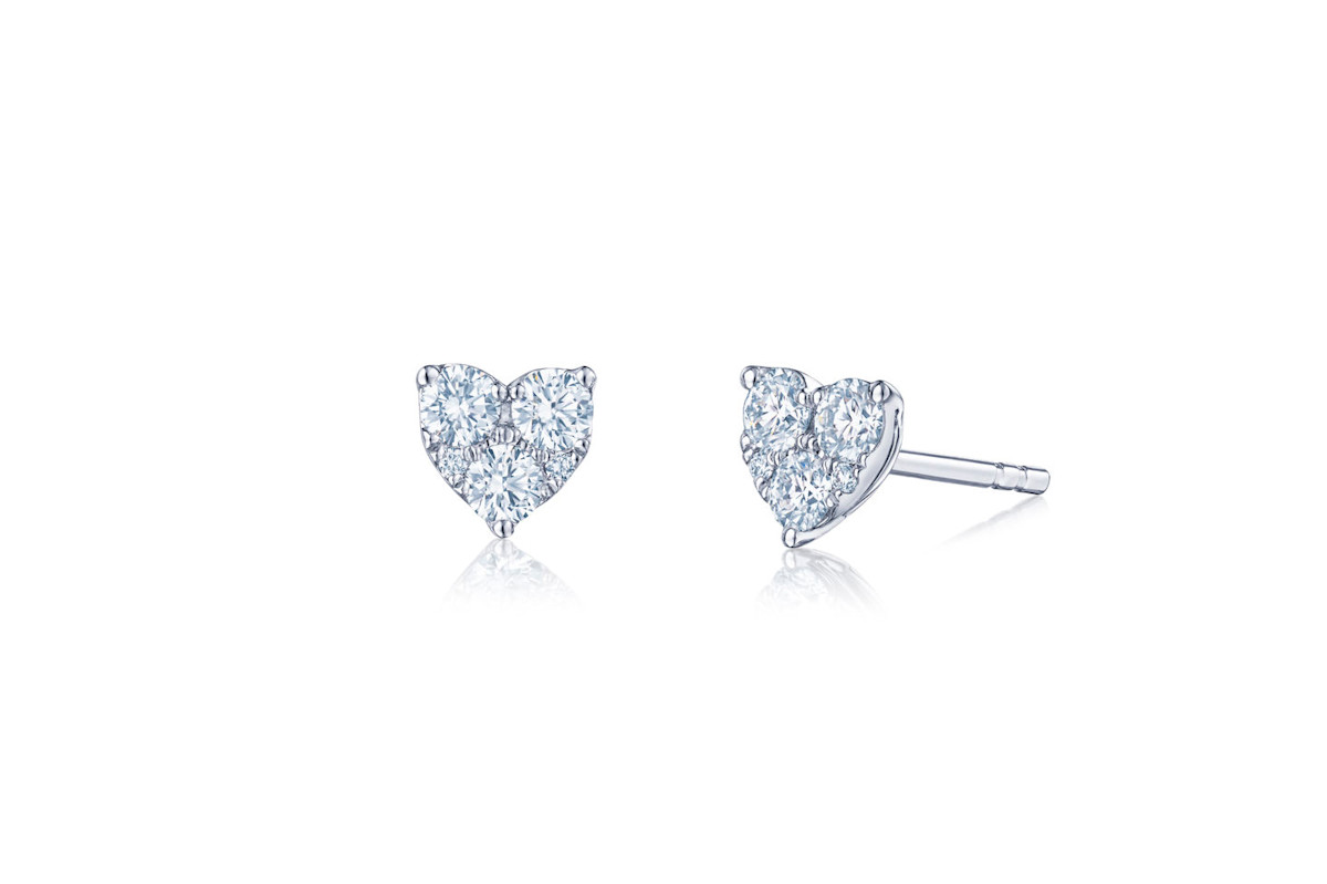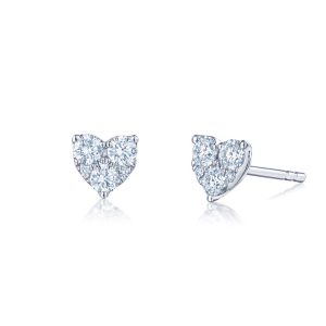 The Sunburst Diamond Heart Earrings by Kwiat are lovely round brilliant diamond studs set in a heart shape. We love the way these studs sparkle in white gold and fill the ear!
