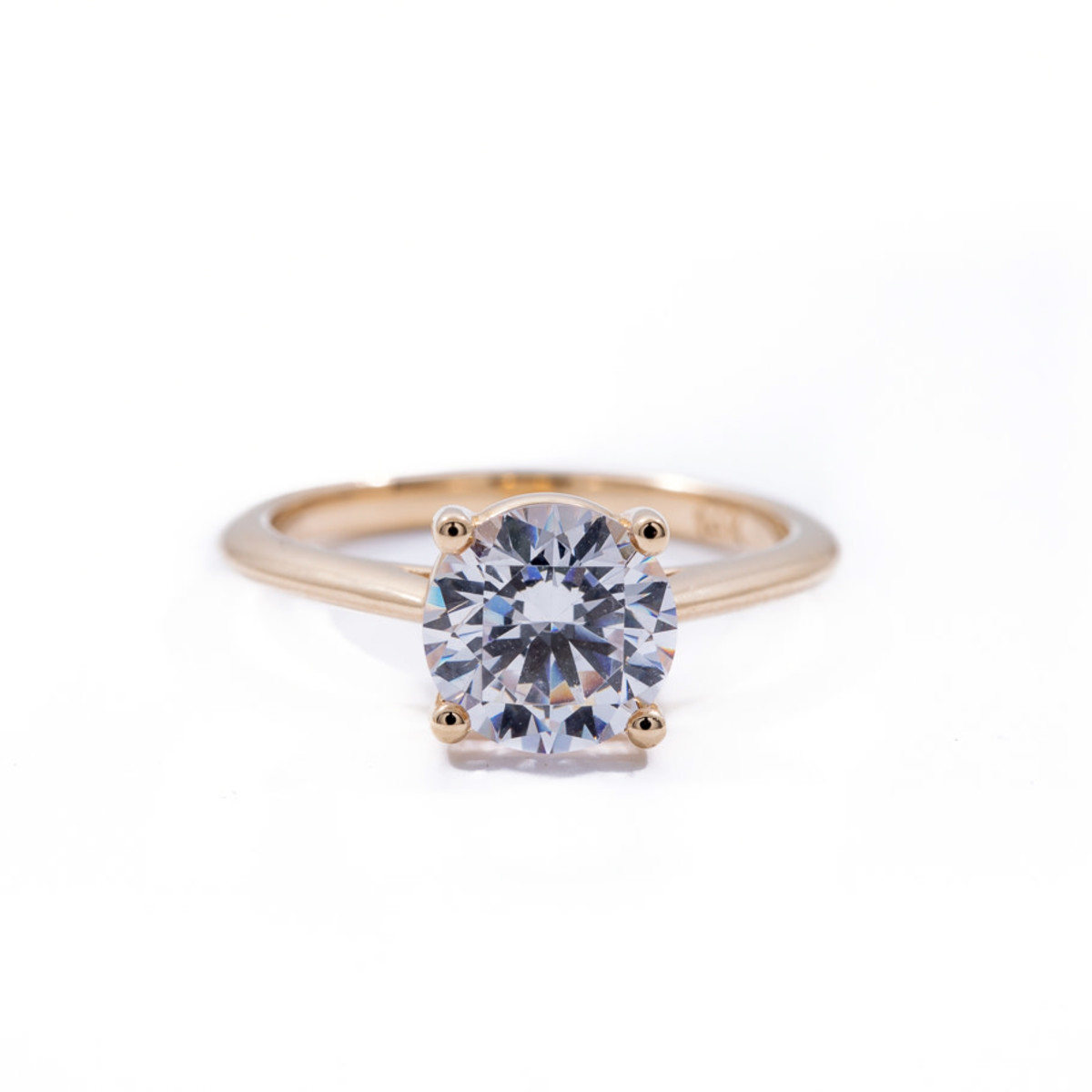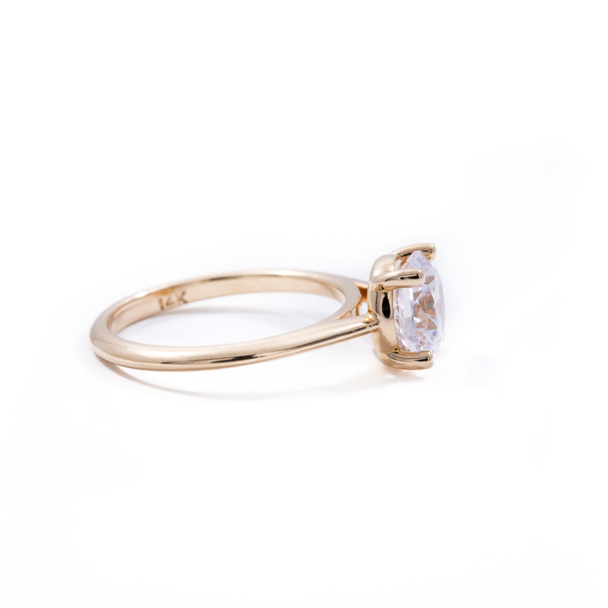 The Amelia Engagement Ring, a part of M. Flynn’s engagement ring collection, is made-to-order in 14K or Platinum. Let us help you find the perfect center stone to create the ring of your dreams. M. Flynn works with natural diamonds.