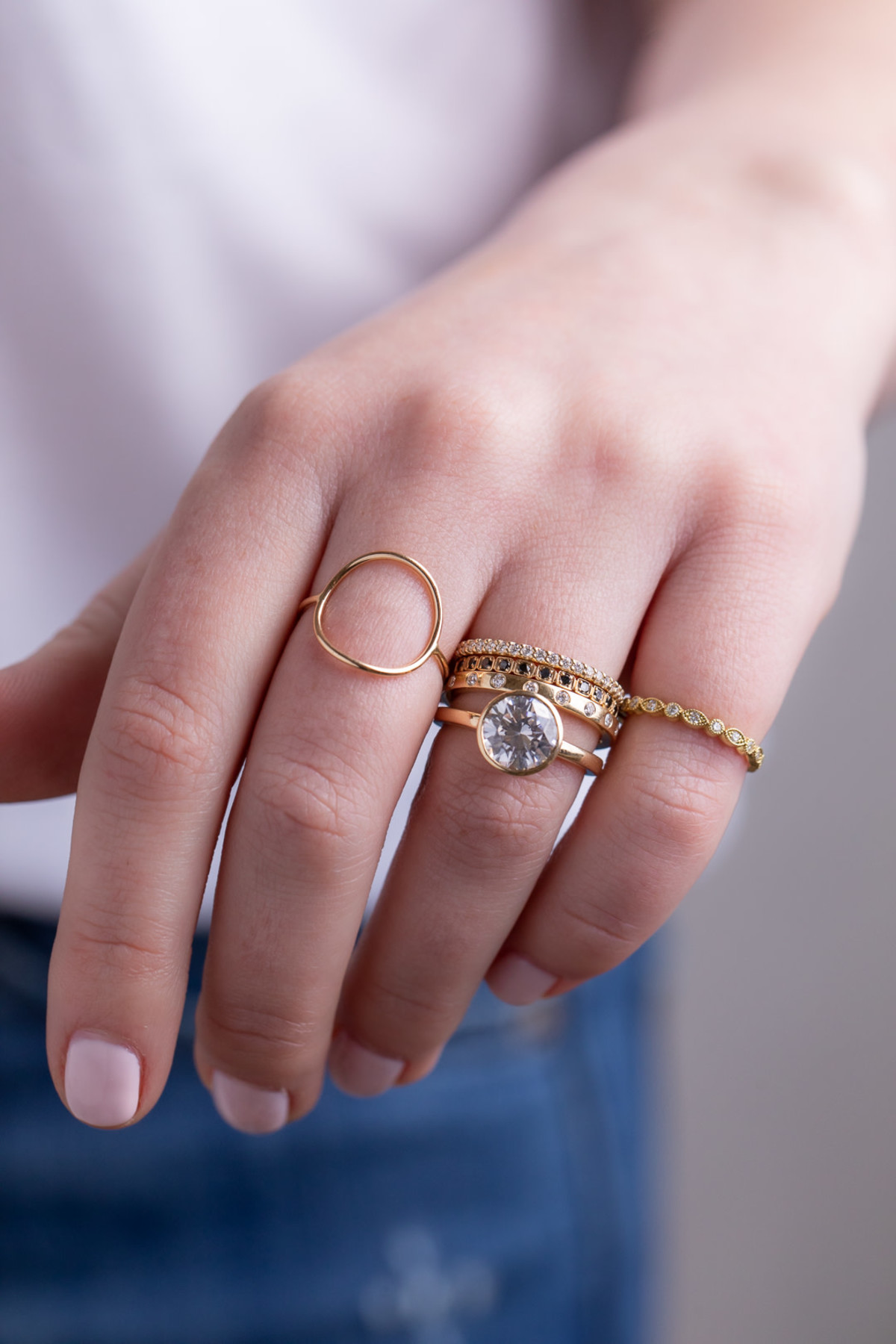 The Charlotte Bezel Engagement Ring, a part of M. Flynn’s engagement ring collection, is made-to-order in 14K or Platinum. Let us help you find the perfect center stone to create the ring of your dreams. M. Flynn works with natural and lab created diamonds.