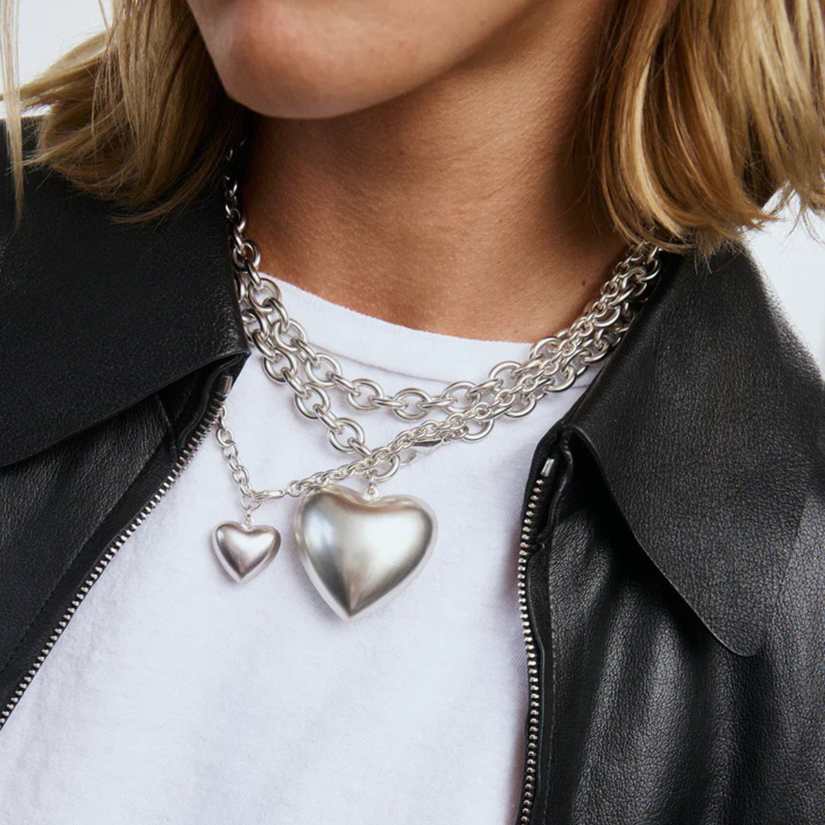 A bold take on a classic. Roxanne Assoulin’s Puffy Heart Necklace makes a statement with its glossy silver finish and oversized charm. Wear it solo or layer it up—it’s a feel-good piece with major heart.