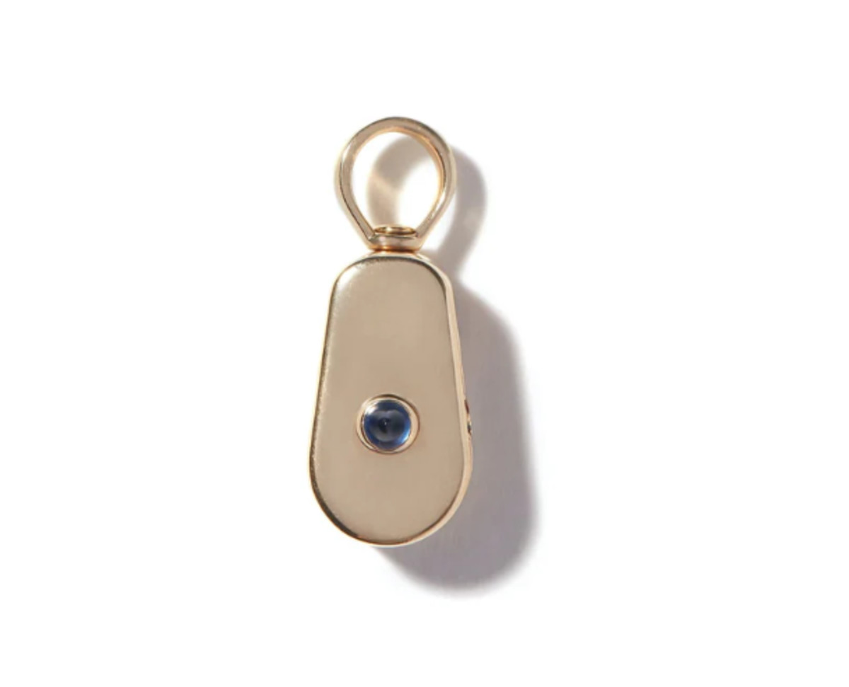 A delicate balance of elegance and ingenuity, The Pulley with Sapphire in 14K Yellow Gold is a unique design that brings understated luxury to your jewelry stack. Crafted in rich 14K yellow gold, this piece features a bezel-set sapphire—adding a subtle hint of color and sparkle. Inspired by vintage mechanics and modern minimalism, The Pulley is both functional and decorative, perfect for pairing with your favorite chains, locks, or charms.