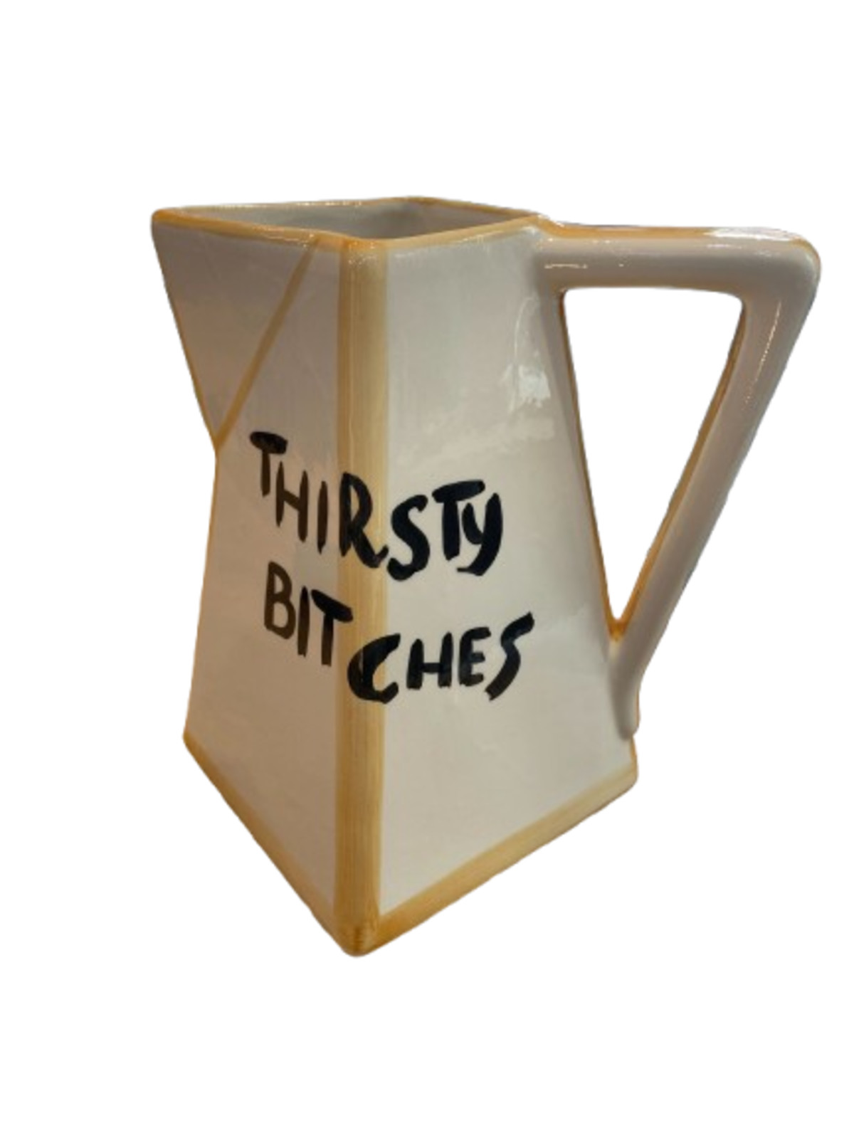 Stay hydrated… or don’t. The “Thirsty Bitches“ Big Jug is unapologetically bold and built to serve. Crafted from high-quality ceramic with a glossy finish, this oversized jug is perfect for pouring water, wine, cocktails, or whatever you’re craving—with a side of attitude. The playful slogan adds instant personality to your table or bar cart, making it a favorite for parties, brunches, or bold home décor.