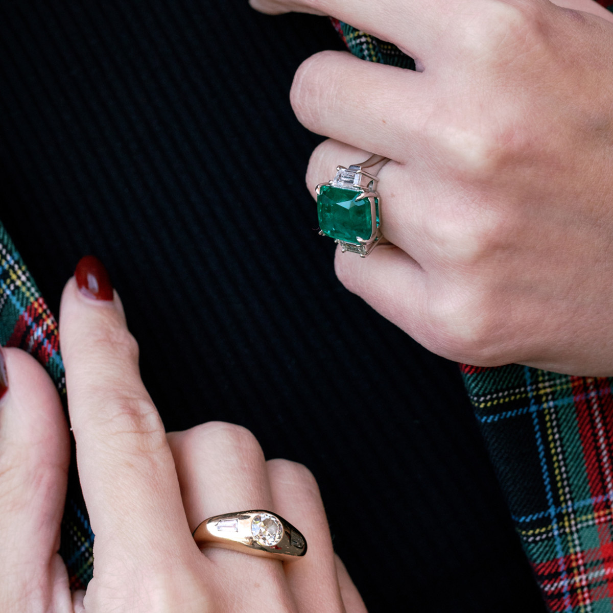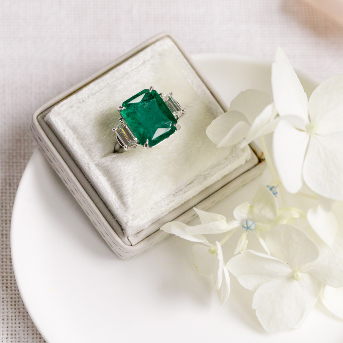 - Diamond trapezoid side stones provide added elegance and sparkle.