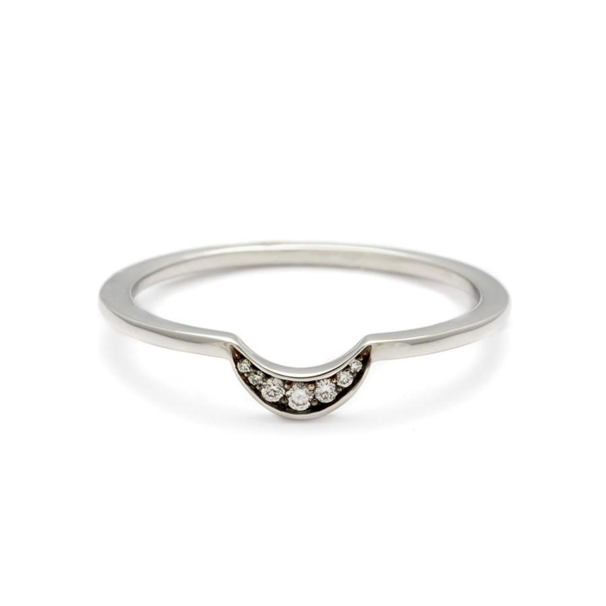A dash of the mystical enters into our Tiny New Moon by way of the delicate, diamond dusted shape. The silhouette is a perfectly feminine reference to the sliver of light in the night sky following the new moon. These bands stack with many of our rings and lend illumination when worn layered or singularly.