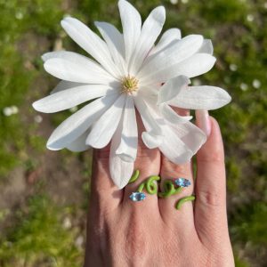Turquoise and Baby Blue Enamel Flower Earrings in 9K Yellow Gold