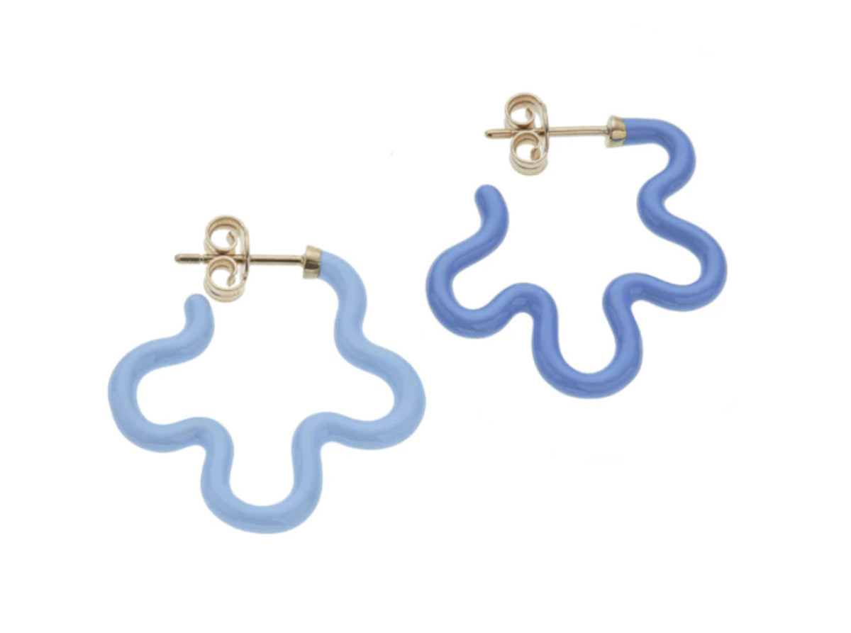 Turquoise and Baby Blue Enamel Flower Earrings in 9K Yellow Gold