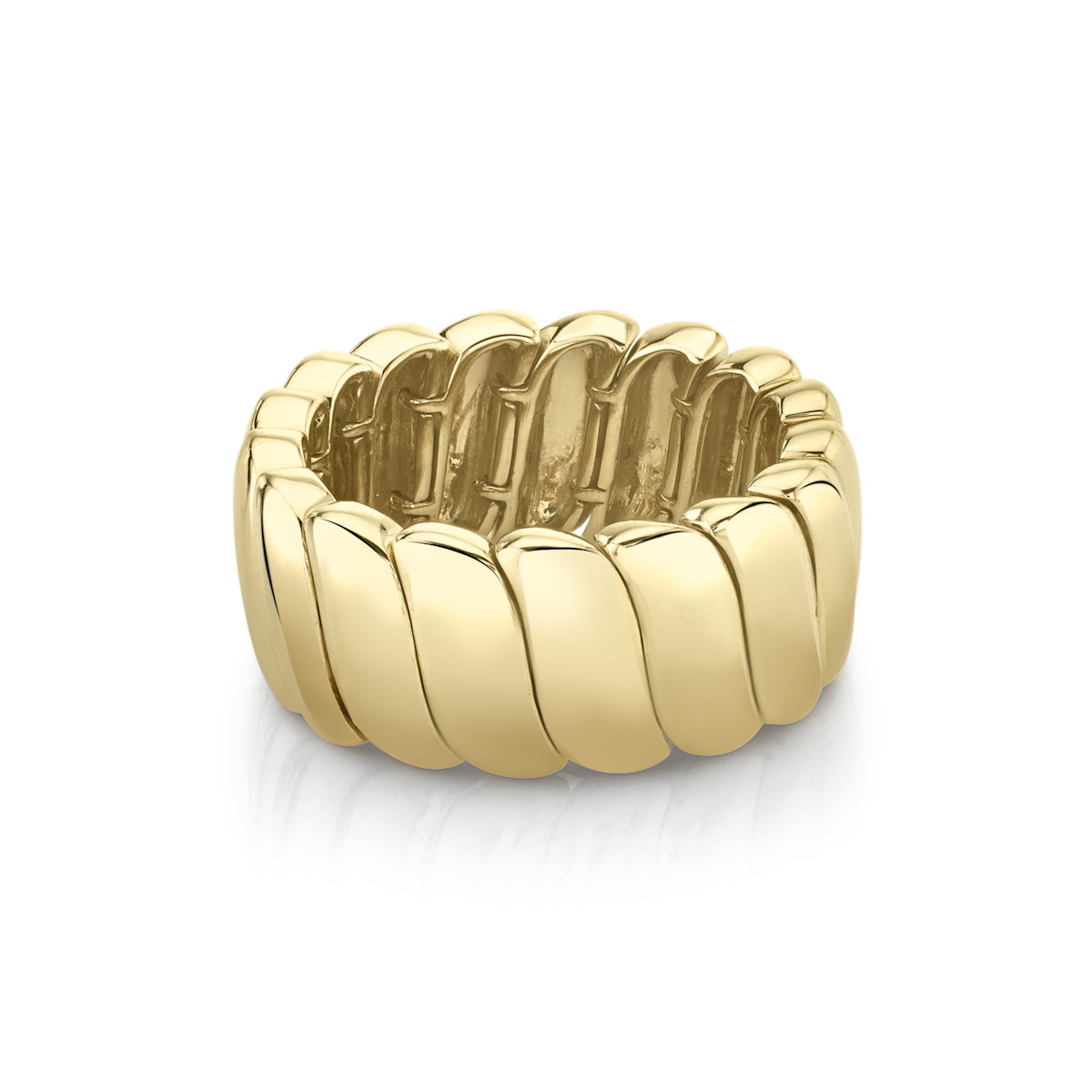 The Zoe Ring by Anita Ko is a chunky gold ring that makes a statement, but looks sleek and smooth in all gold.