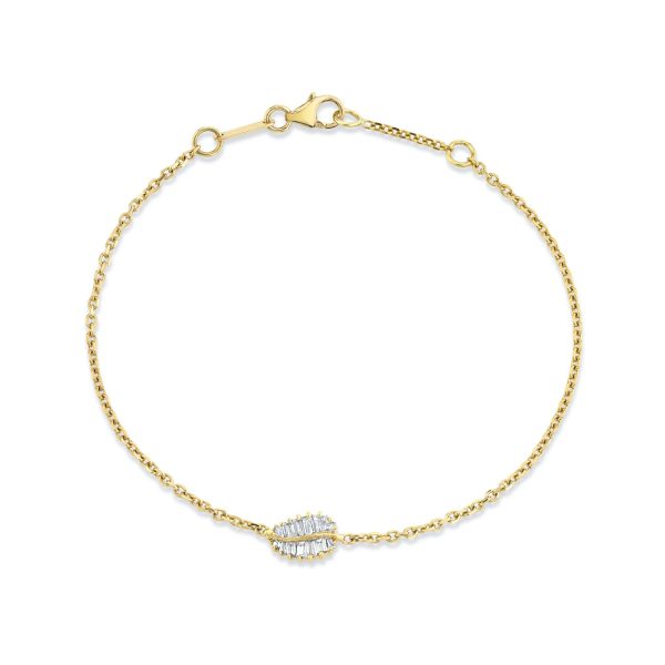 The Small Palm Leaf Bracelet by Anita Ko is a simple, yet stunning gold and diamond layering bracelet featuring their signature palm leaf motif with luxurious baguette diamonds.