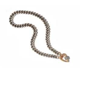 A rolo style chain with yellow gold loops in silver